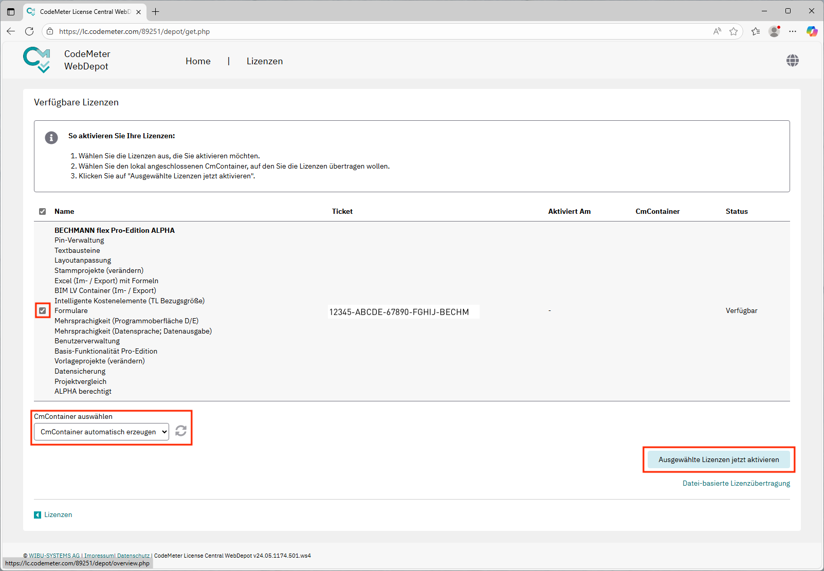 - Die Edition ist in den Codemeter Container geschrieben und steht nun zur Verfügung