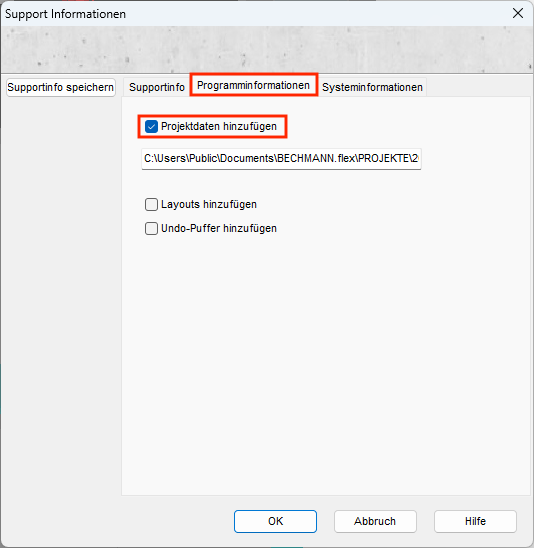 Supportinformation und Projekt an BECHMANN schicken